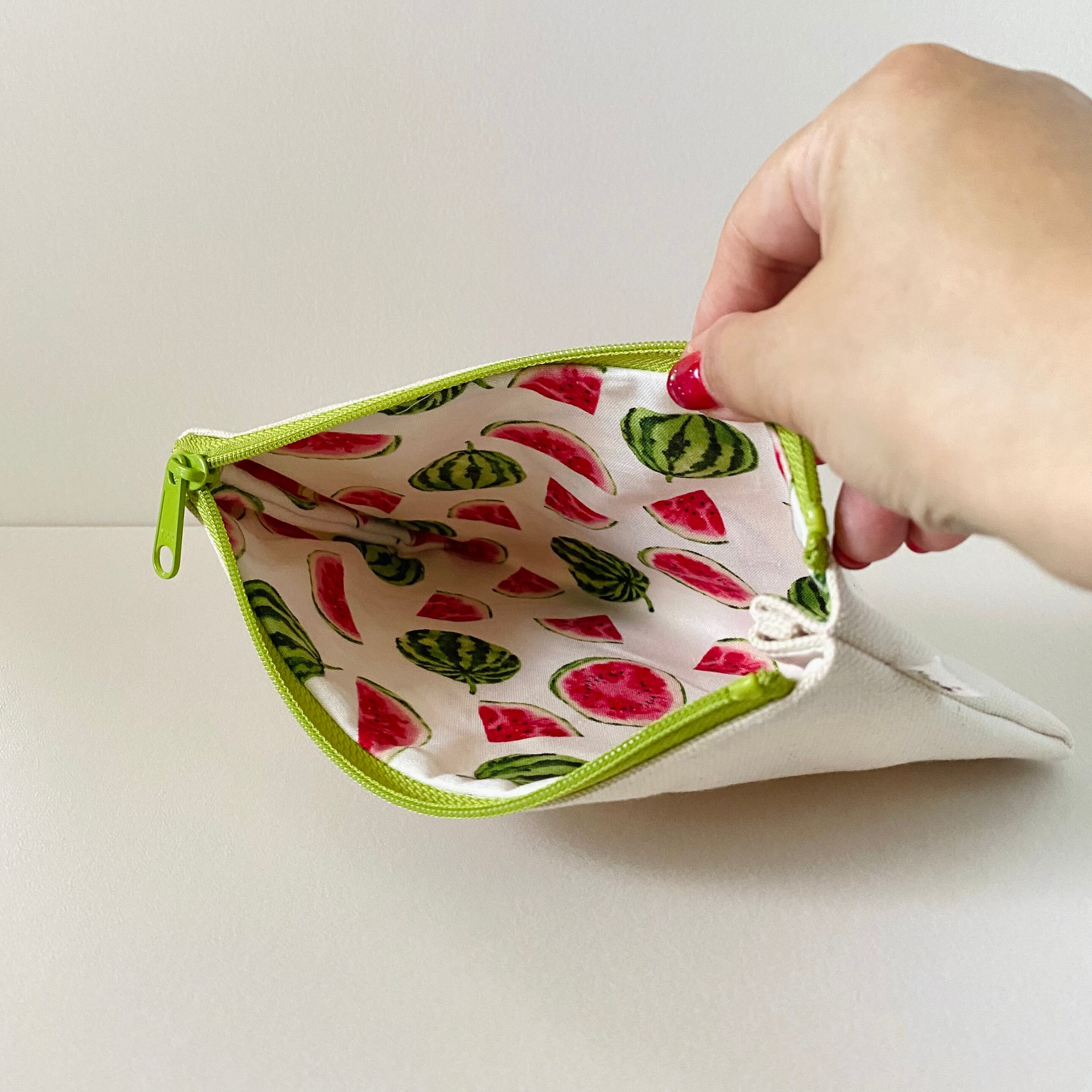 ポーチの内布はすいか柄でとても夏らしいです