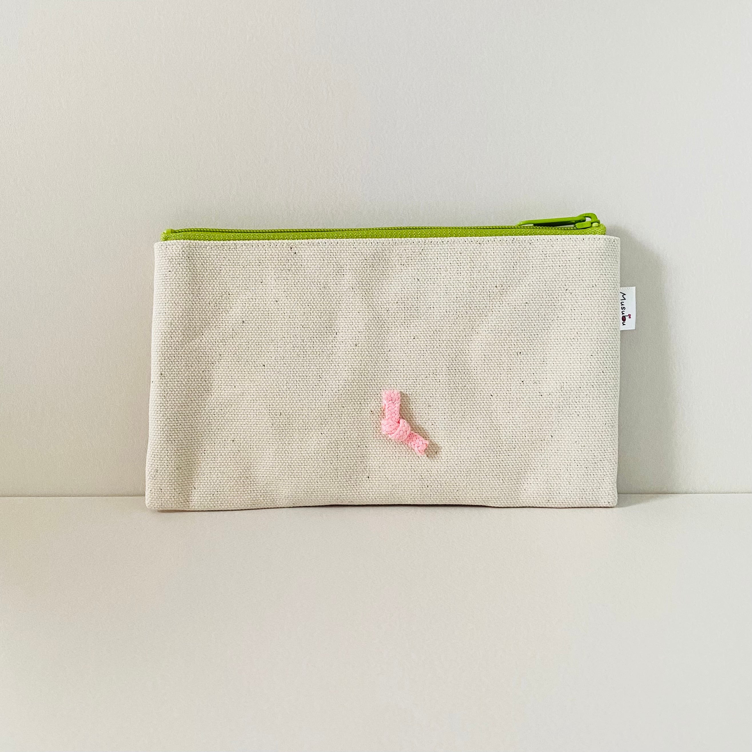 刺繍入り帆布のフラットポーチ