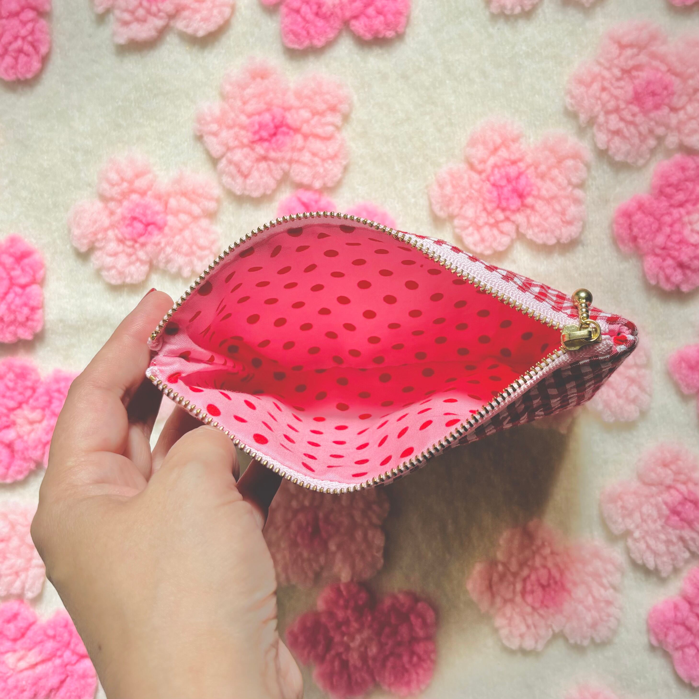 キルティングポーチ (赤ギンガム)