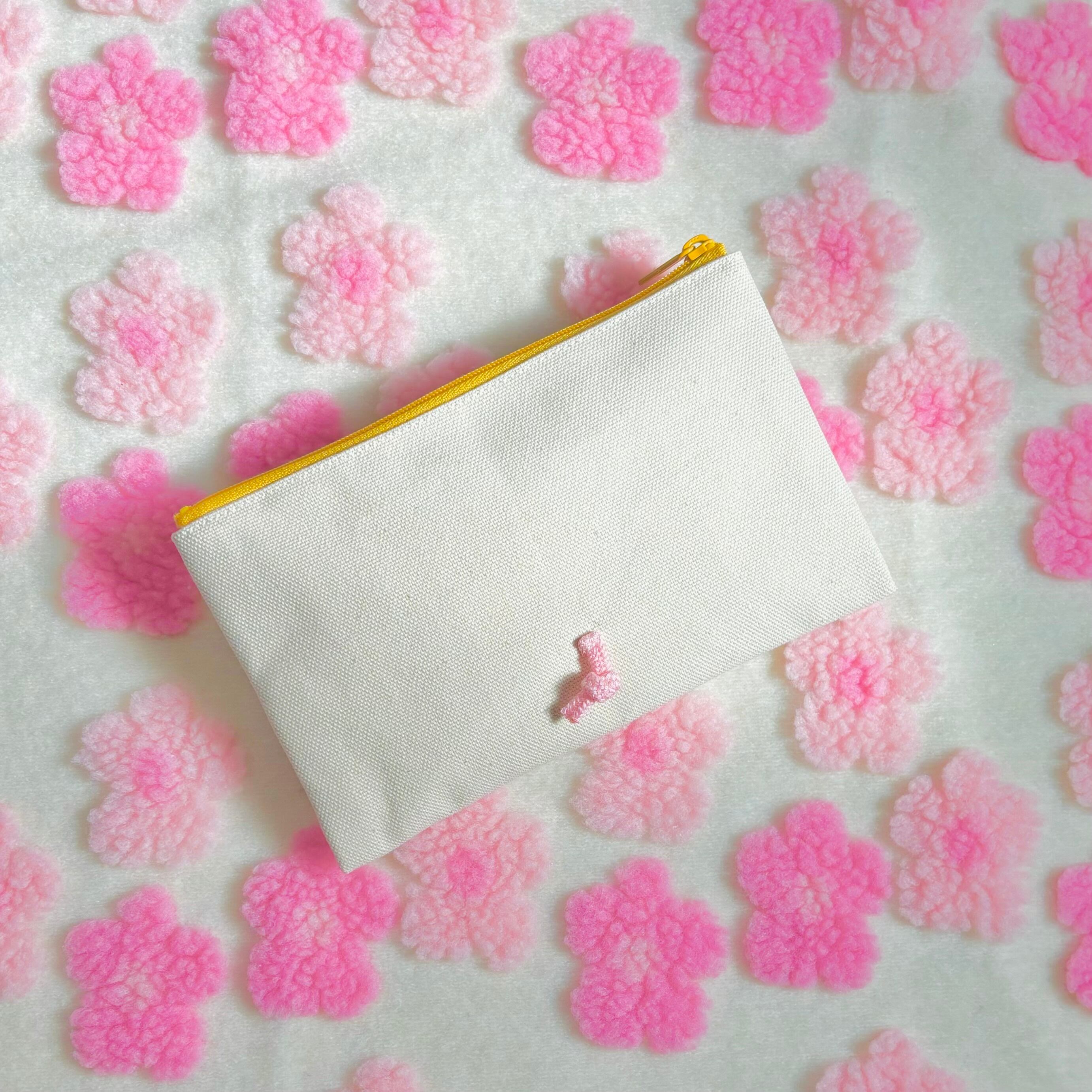 刺繍入り帆布のフラットポーチ