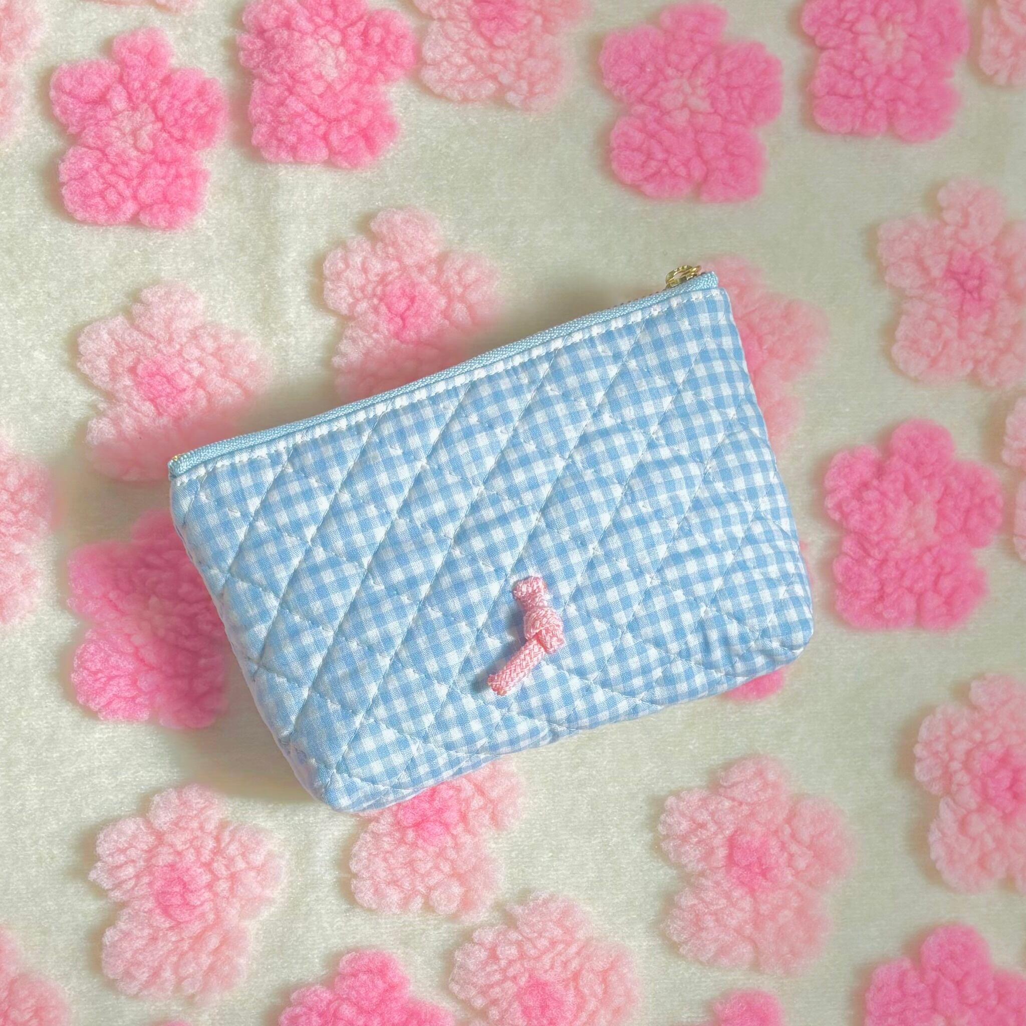 キルティングポーチ (水色ギンガム)